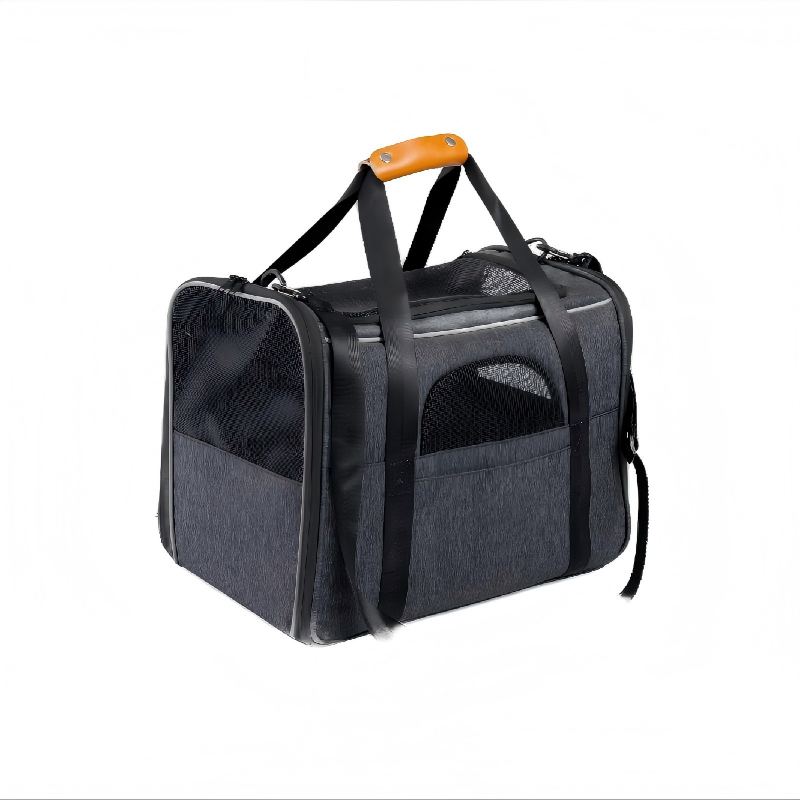 Denne utendørs sammenleggbare bærbare dyrevesken er et utmerket valg for kjæledyrreiser. Størrelsen er 38,5 × 27 × 34 cm, med en rimelig design som gir god plass for kjæledyr å bevege seg rundt. Den doble utformingen av håndtaket og selen gjør det lettere for eiere å bære. Bruken av pustende nettingstoff gjør oppholdsrommet for kjæledyr mer komfortabelt, og det sammenleggbare designet gjør oppbevaringen av denne vesken mer praktisk. Når den ikke er i bruk, kan den plasseres hjemme eller i bagasjerommet uten å ta mye plass. Denne vesken veier 1,244 kg, selv om den er litt tung, er den solid og slitesterk, og gir et trygt og komfortabelt reisemiljø for kjæledyr. Produktet støtter tilpasning av logo, størrelse og utskrift.